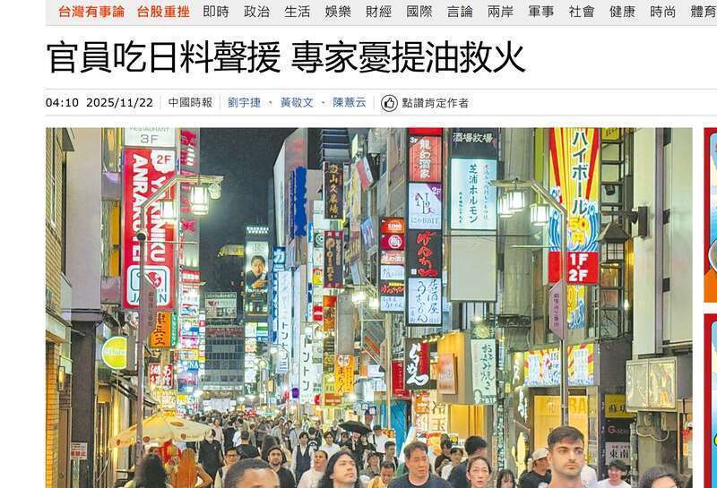 台湾《中国时报》分析认为,日本政府首脑公然提及“存亡危机事态”这种军国主义复活的话语,必然引发中国等亚洲邻国高度不安;高市早苗为摆脱建制派而更加倚重日本极右翼,后者恰恰与台湾民进党存在密切互动。因此,赖清德当局声援高市政府,与其说是“倚日抗中”,不如说是谋求“日台一体”,势必引发中国大陆高度警惕。台媒还指出,赖清德并不在意台湾的利益和安全,只是兴冲冲地认为自己可以在中日关系紧张局势中浑水摸鱼,给自身上任一年多以来陷入困境的“反中牌”找到新的支点。